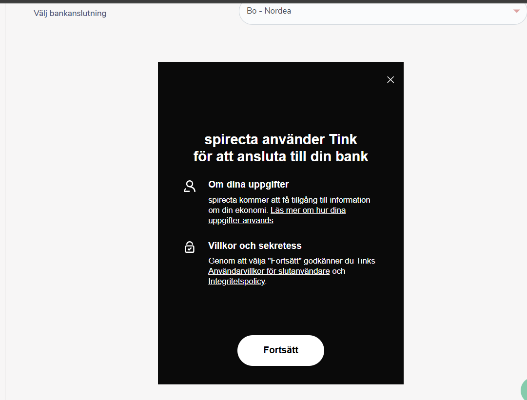 För mer information: https://forum.spirecta.se/t/anslutning-till-din-bank-eller-annan-leverantor-via-bankid-och-var-leverantor-tink/896.