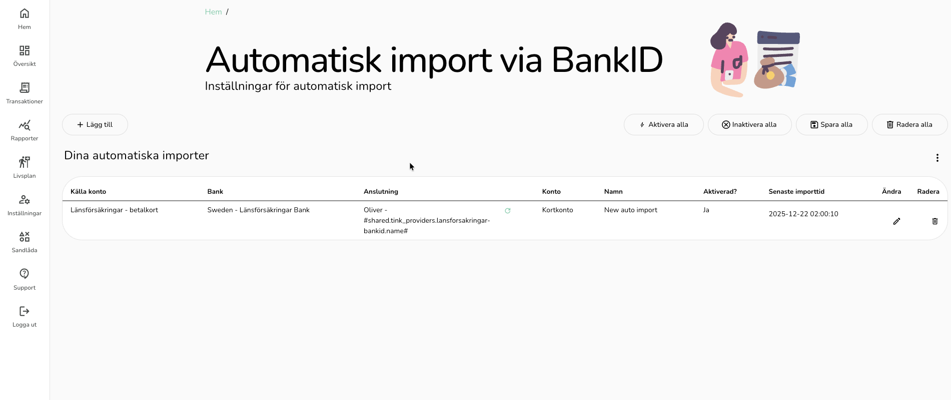 Det roligaste vi gjort på sistone är att automatisk import med Tink,som gör att Spirecta varje natt ska hämta nya transaktioner. Tror gränsen för det här är 90 dagar innan man behöver uppdatera kopplingen med Bank-ID.