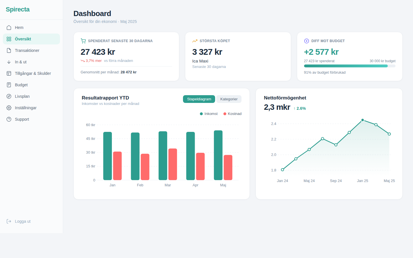 Spirecta i sin bästa form är en ekonomisk verktygslåda som ger input på din ekonomi.
