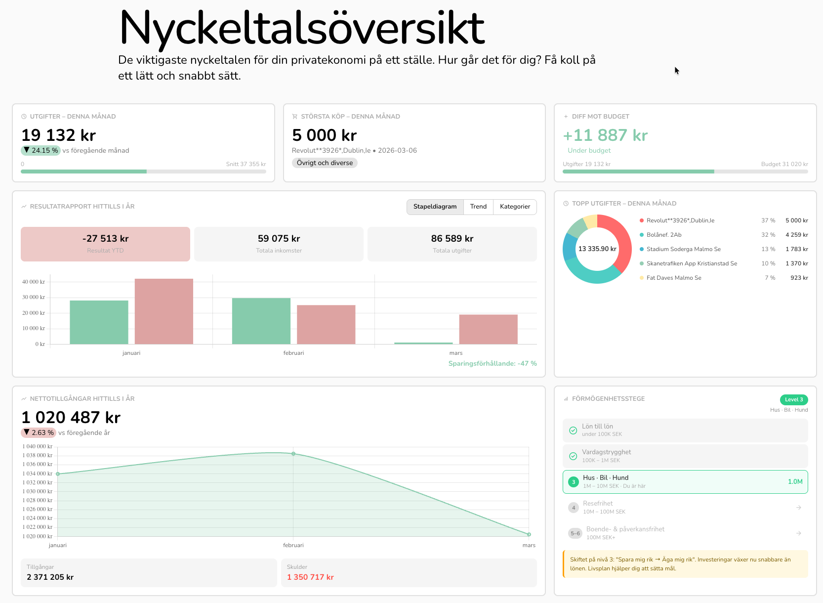 För de som har svårt med siffror, skulle en mer automatiserad och visuell approach vara till stor hjälp. Tänk dig att enkelt kunna se vad bilen kostar per månad, eller vad som händer med ens förmögenhet om man börjar hyra ut sommarstugan. Att kunna simulera olika scenarier och se konsekvenserna på lång sikt skulle vara ovärderligt.